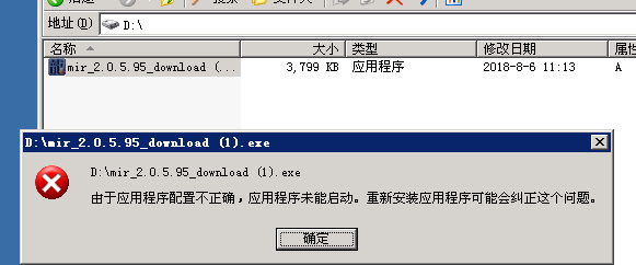 有客户反馈,在服务器上下载盛大官网(http://mir2.sdo.com/web6/index/index.asp)的传奇下载器运行报错,如下